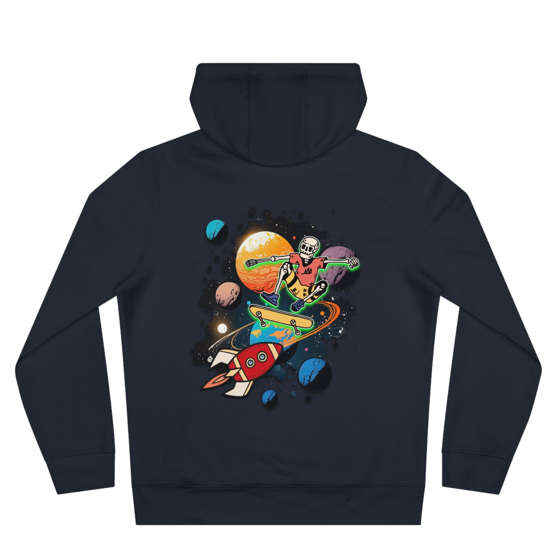 Cozy up with the perfect blend of comfort, style, and sustainability. The "Space Skat'n Skeleton" hoodie, crafted from a premium mix of 50% cotton and 50% polyester, delivering warmth without the bulk. Ideal for cool days, chill nights, and everyday wear.